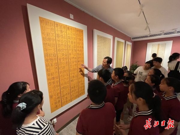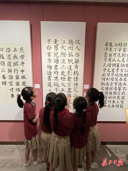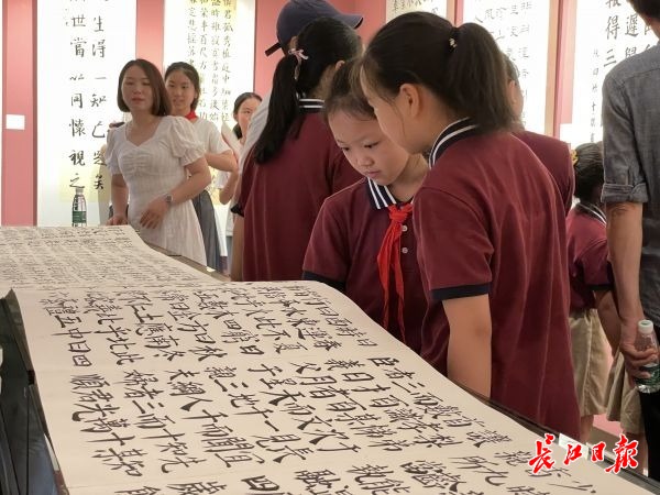入展学生代表沌口小学毕业生童梦妍说:“我和同学们的作品在这里展示、交流,这是一次书法的盛会,更是青少年用笔墨讴歌时代,听党话、感党恩、跟党走的坚定信念表达,也为自己的小学生活留下一份温馨的回忆。”