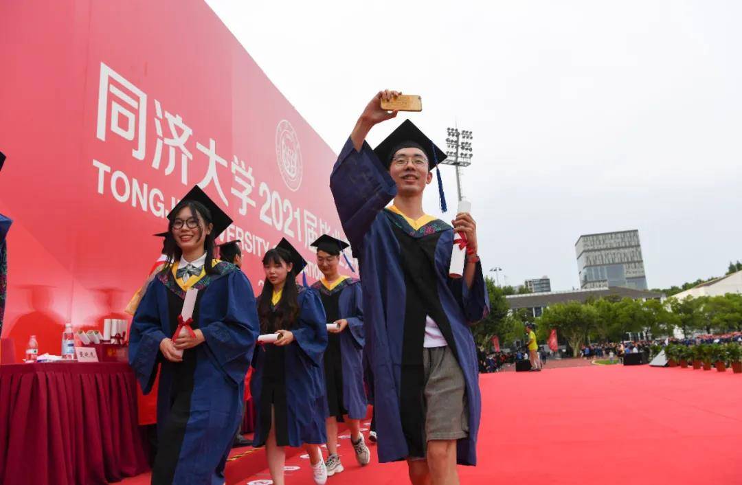 东方网记者傅文婧7月7日报道:为避免阳光炙烤,毕业典礼傍晚时分开幕,延续到晚间;校领导为现场参加毕业典礼的每一位学子一一拨穗,拨穗历时近3个小时;师生共绘的百米学党史长卷庆祝建党百年……7月6日傍晚,同济大学2021届毕业典礼在四平路校区一·二九运动场举行。校党委书记方守恩、校长陈杰等全体校领导出席典礼,并为现场每一位毕业学子拨穗。