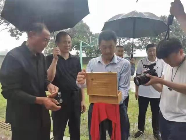 在大悟县黄站镇熊畈小学,高大的雪松沉默肃立,深情地凝视着这次时隔七十余年的“团聚”——长眠于此的河南省商城籍烈士王殿禄团长与7名亲属终于“相见”。