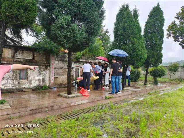 7月2日上午12时,第一时间,王殿禄烈士7名亲属赶到大悟县熊畈小学,在烈士墓前举行了庄重而简朴的祭奠仪式。