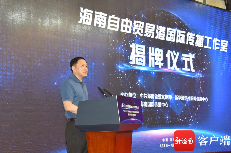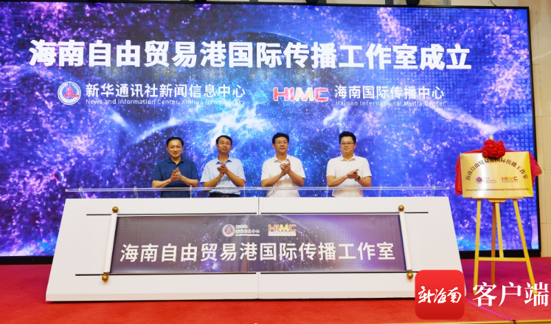 当天,海南省委宣传部副部长吕鸿,新华社新闻信息中心党委书记、主任储学军,海南日报报业集团党委副书记、总编辑吴斌,新华社海南分社副社长周立民共同为“海南自由贸易港国际传播工作室”揭牌。