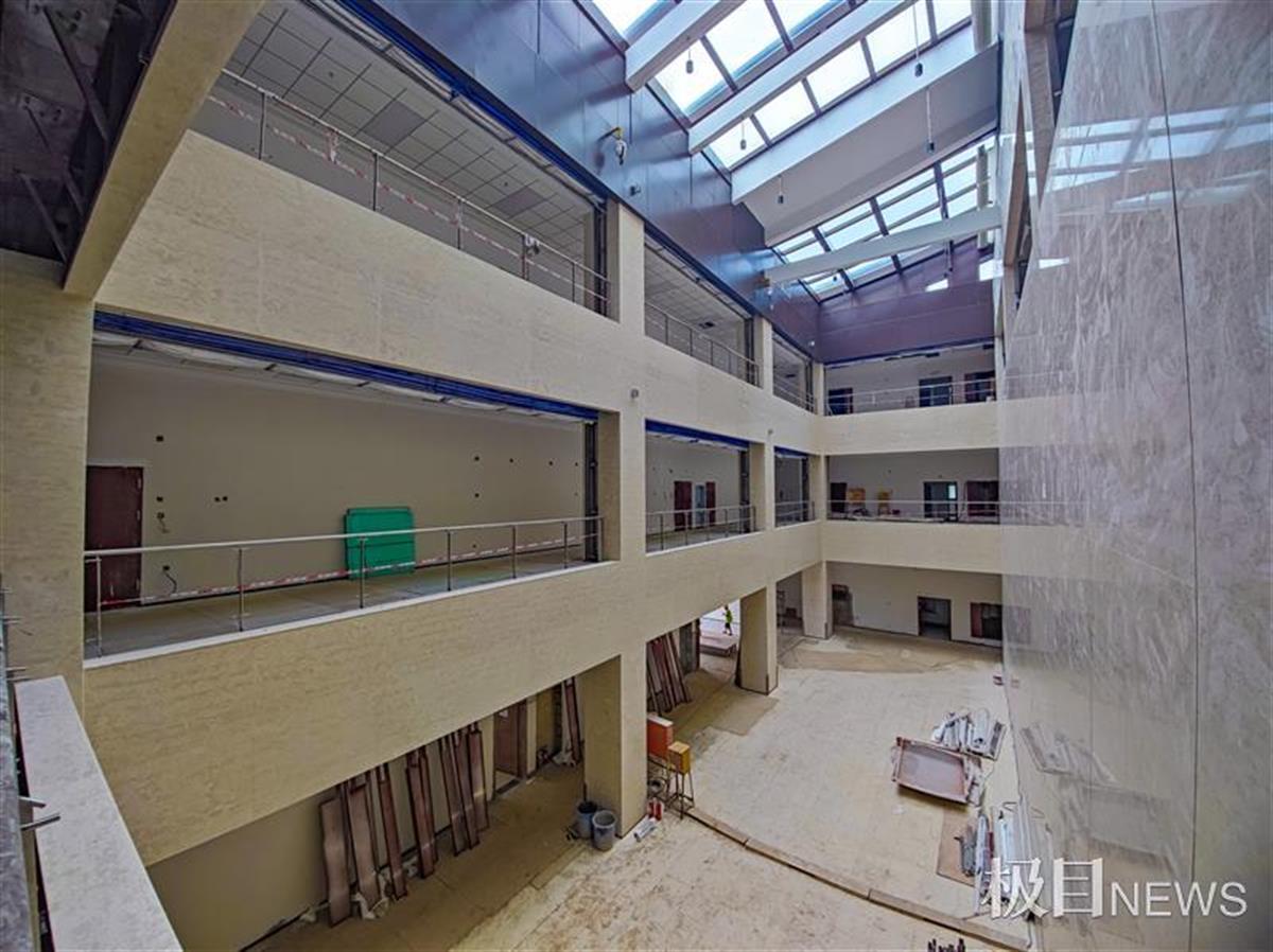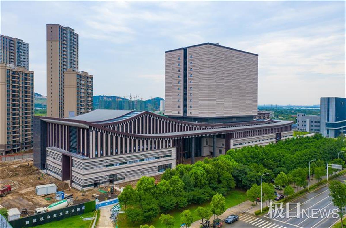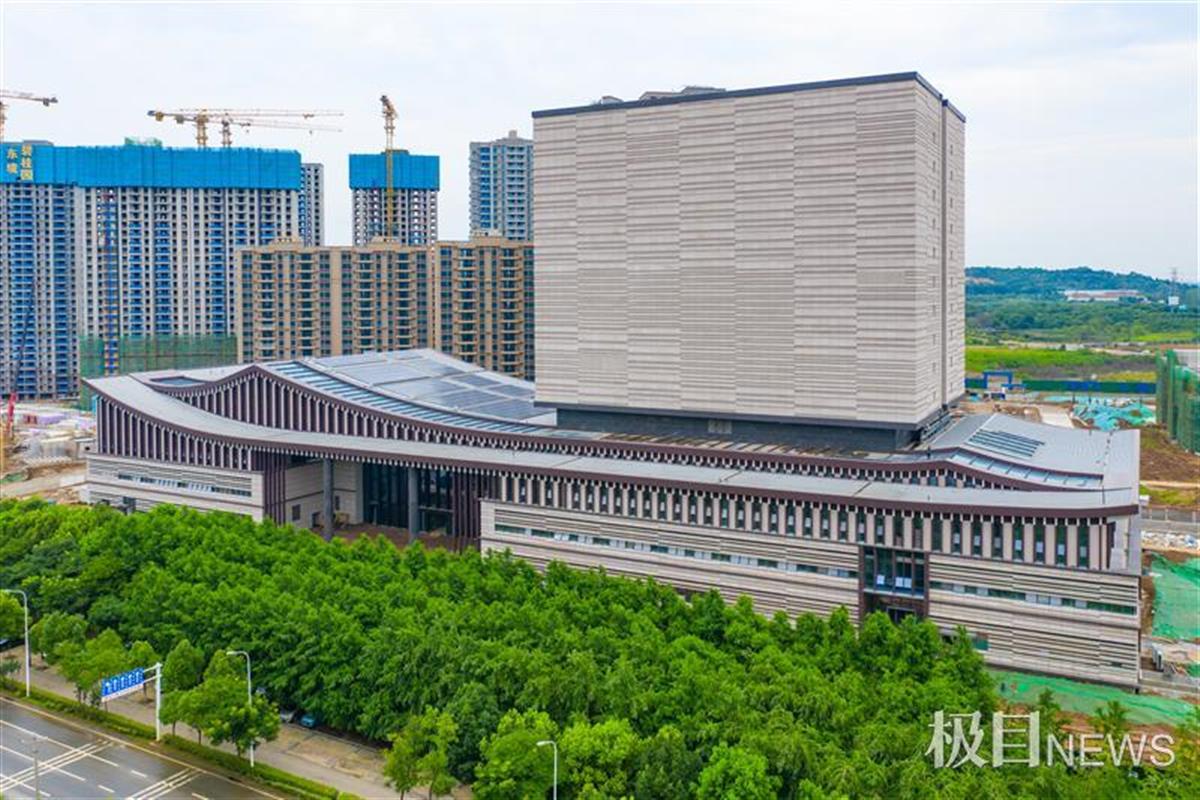 7月8日,镜头下的湖北省档案馆新馆,建筑裙楼好似摊开的档案史册,主楼像一枚加盖其上的印章。该档案馆主要包含一栋15层68.3米高的建筑以及28米高的4层裙楼,总建筑面积约6万平方米,是湖北省重点文化项目。主要包含档案安全保管、爱国主义教育、档案开发利用、政府公开信息查阅、电子文件备份、档案抢救保护、图书阅览等多种服务功能。目前该馆内外装修进入最后收尾阶段,7月底全部完工,9月竣工验收。