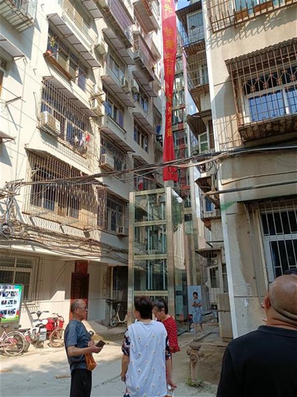 电建小区建于上世纪90年代,楼栋多是7至8层的小高层住房。小区内老年居民较多,加装电梯欲望迫切。由于楼栋间距较小,加装传统电梯难以满足小区消防要求,经过多次挑选,居民们最终确定加装装配式电梯。