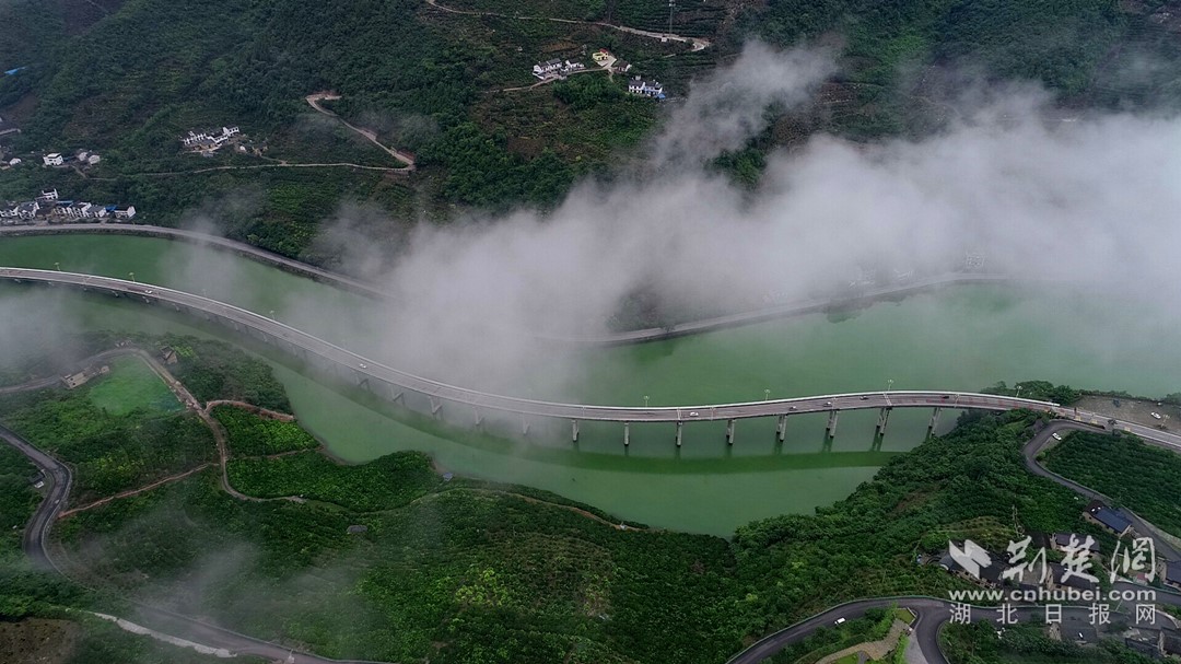 穿梭在云雾中的兴山最美水上公路。航拍:袁选国