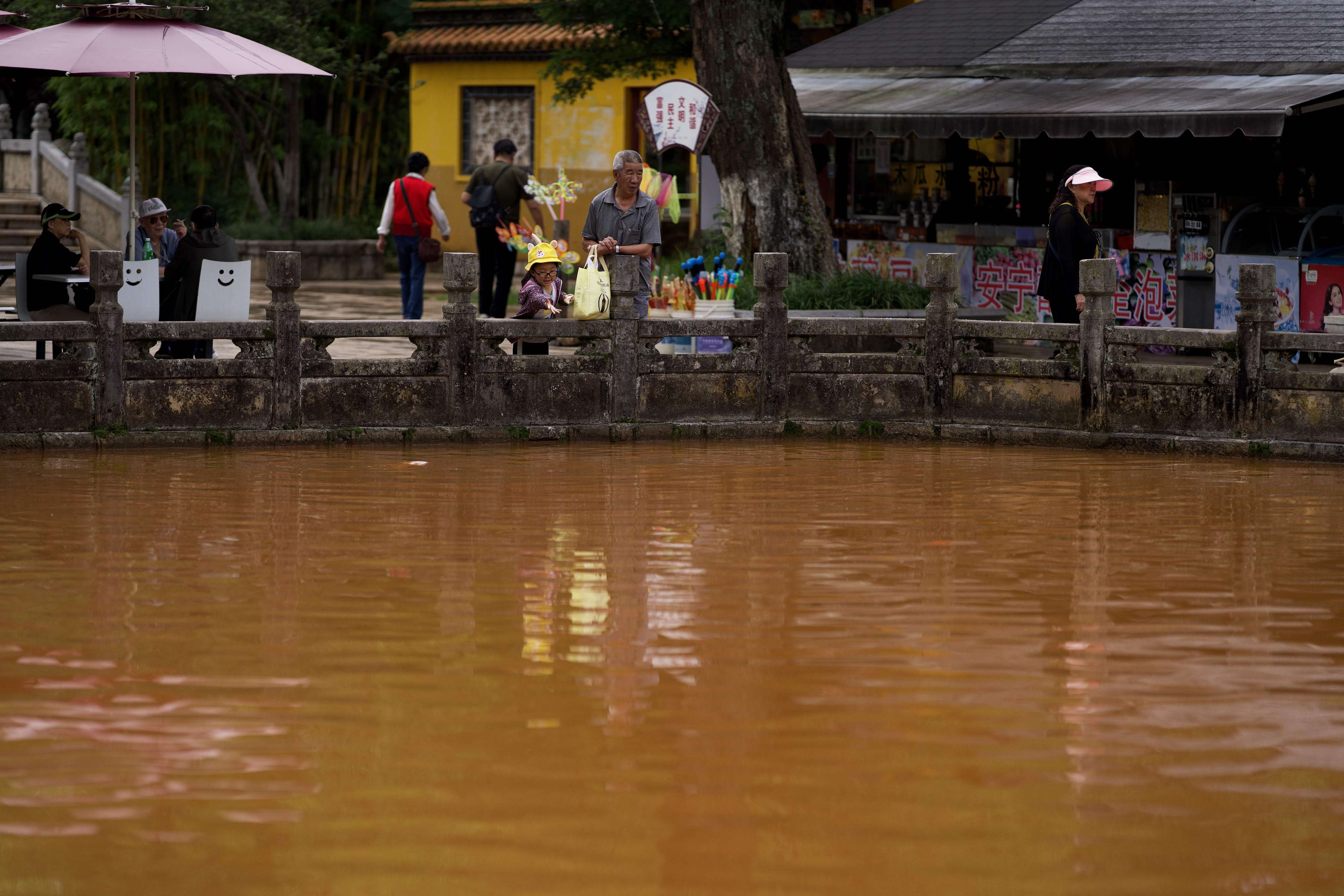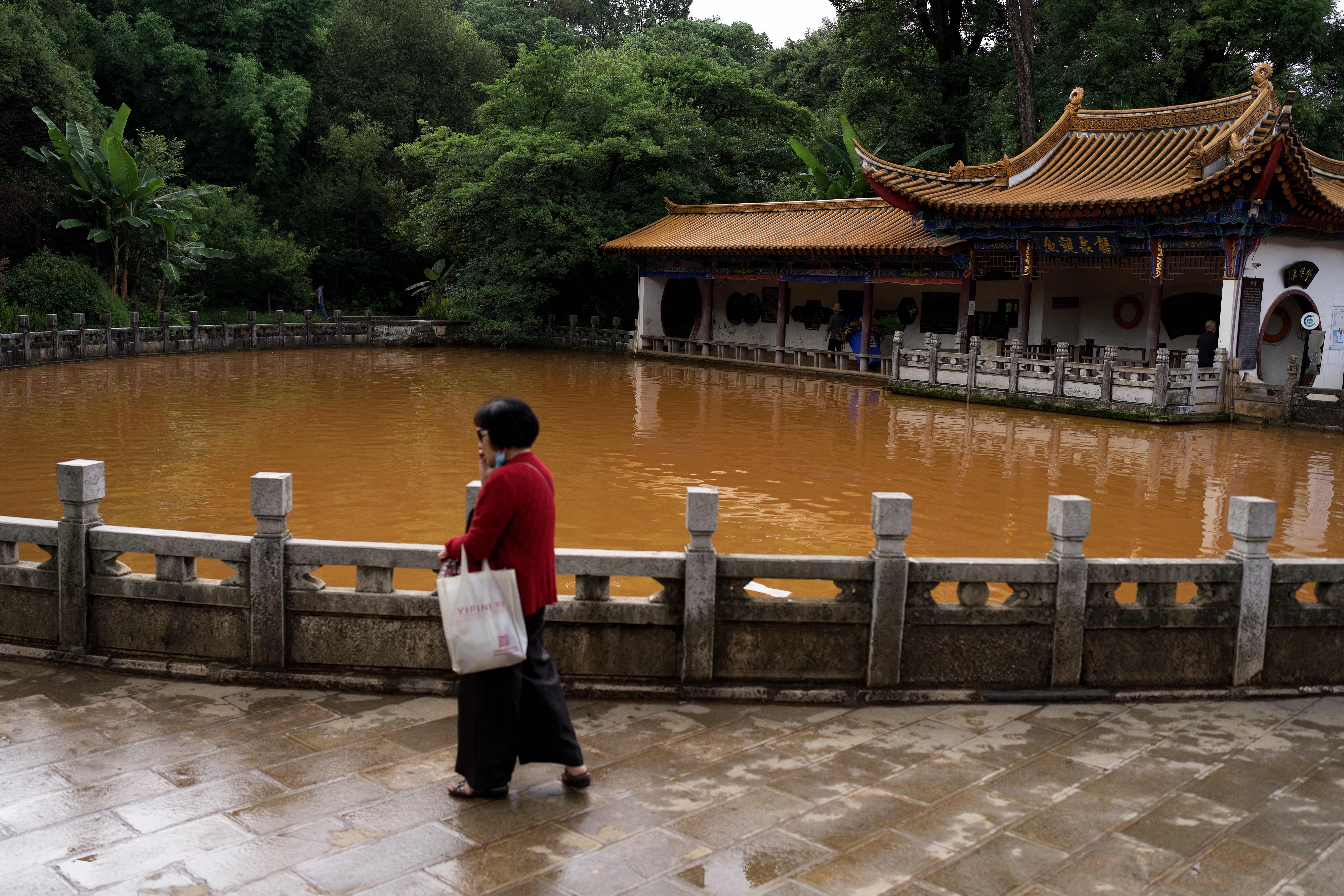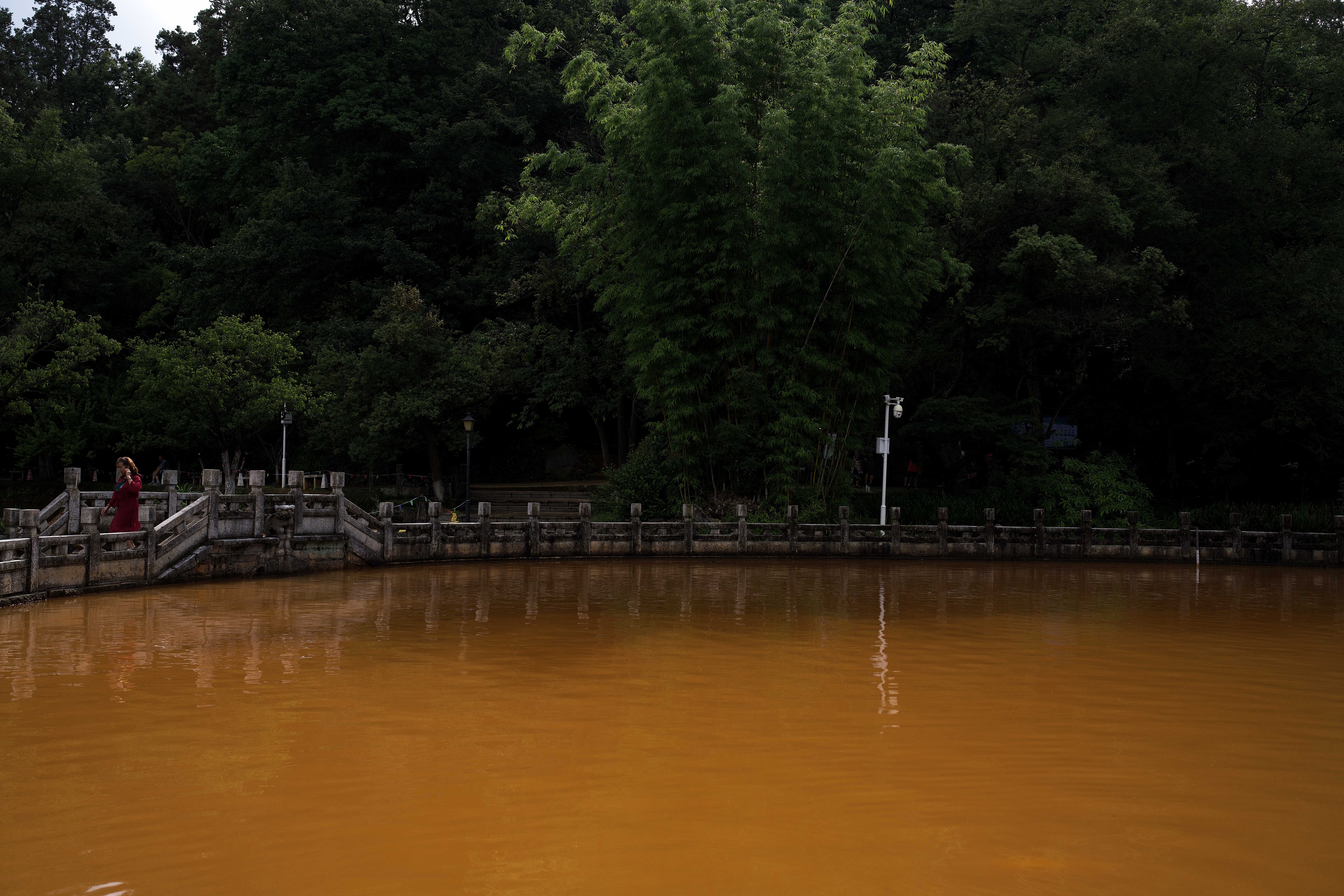 2021年7月9日,云南昆明,清水潭潭水变色。8日,昆明市黑龙潭公园内原本清澈的清水潭潭水变色,浑水潭的水没有变。公园方正在做进一步的观察。据介绍,清水潭近几年曾发生过“变脸”,专家考察分析认为是地质构造原因所致。 人民视觉