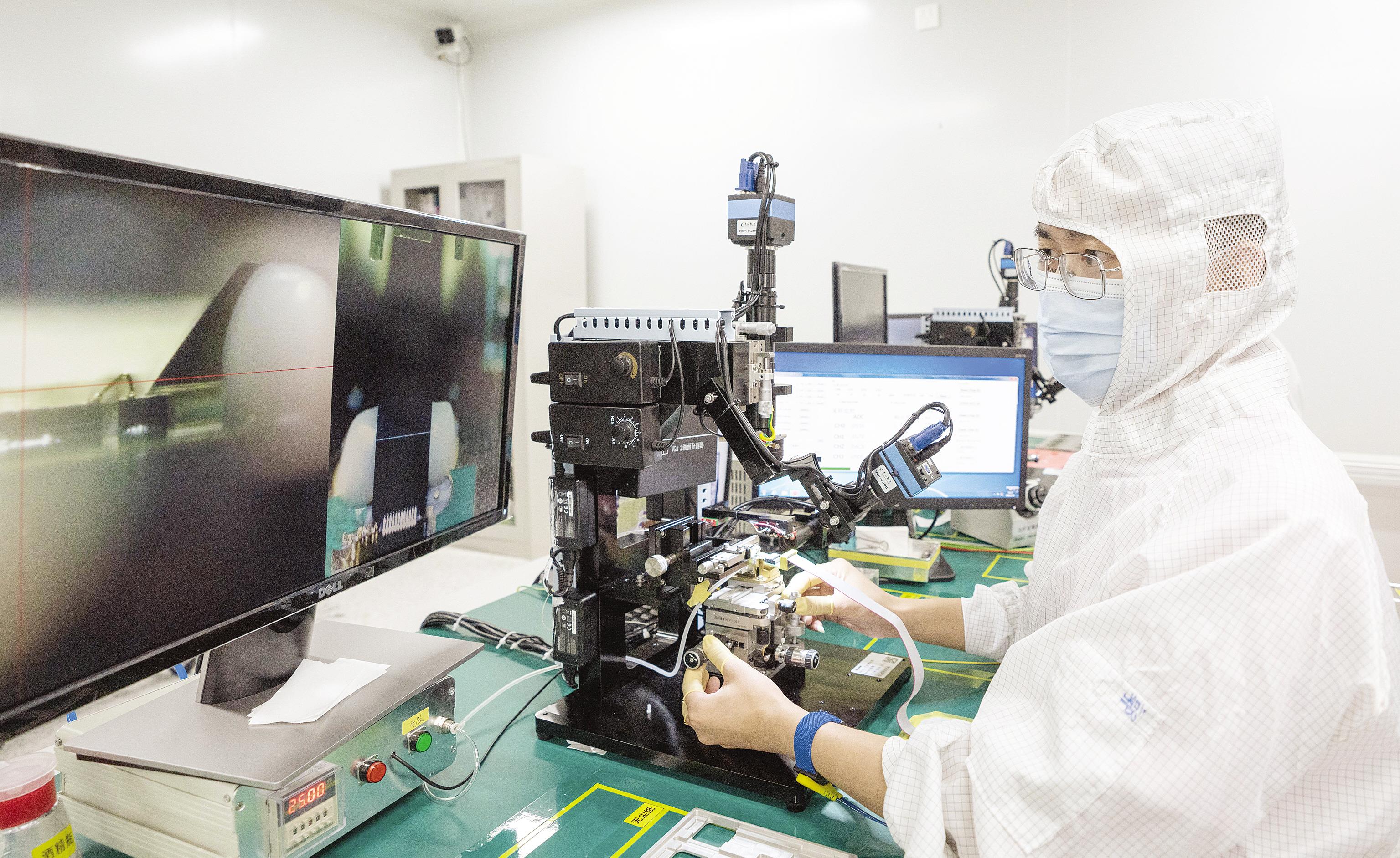 7月8日,阳新灿光光电有限公司无尘车间,员工忙生产赶订单。该公司主要生产和研发光传输器械、5G数据前端传输模块等,是中兴、烽火、华为等百余家通信集团的光器件提供商。今年以来,公司一直满负荷生产,目前订单已排至年底,预计全年产值超过亿元。