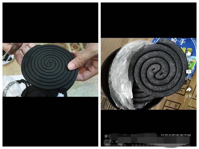 不同电商平台上40盘蚊香,重量相差250克。截图