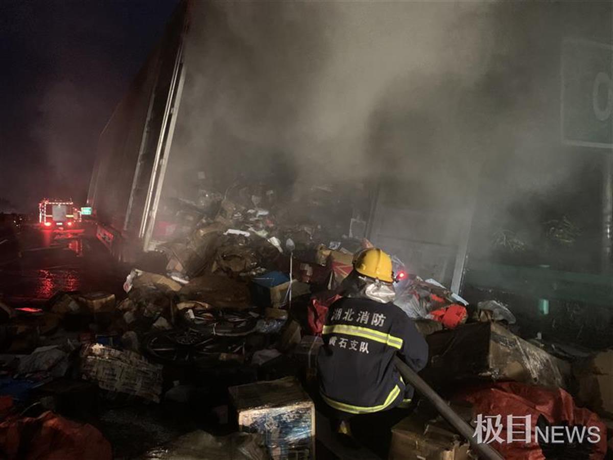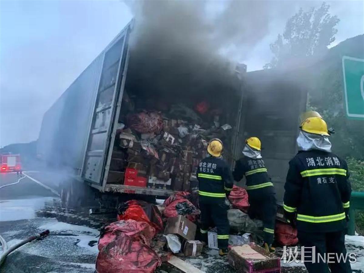 7月11日,湖北省境内大广高速黄石往广州方向一辆满载快递的半挂厢式货车在行驶途中突然起火,造成价值300余万元的快递货物毁于一旦。