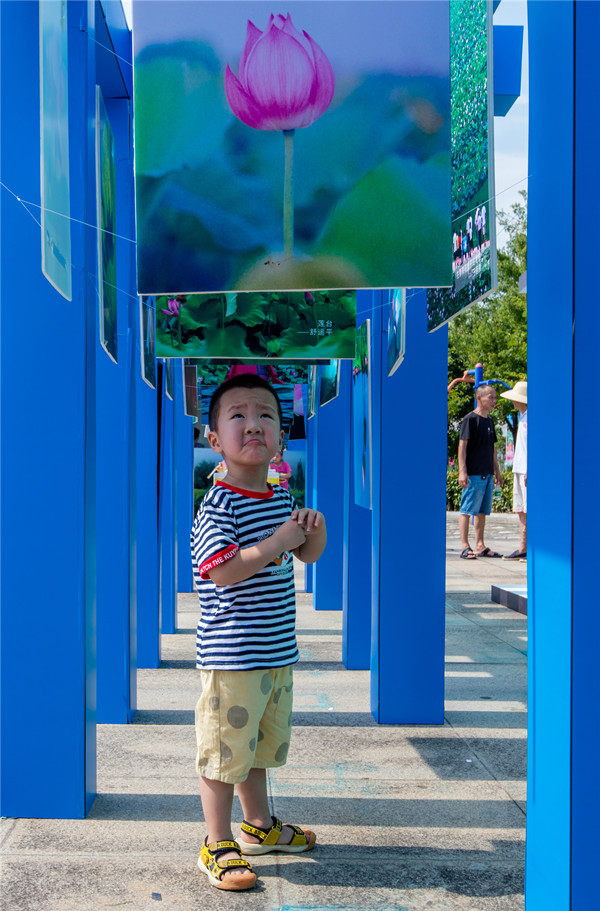 男孩与荷“画”。 城市摄影队韩昶光 摄