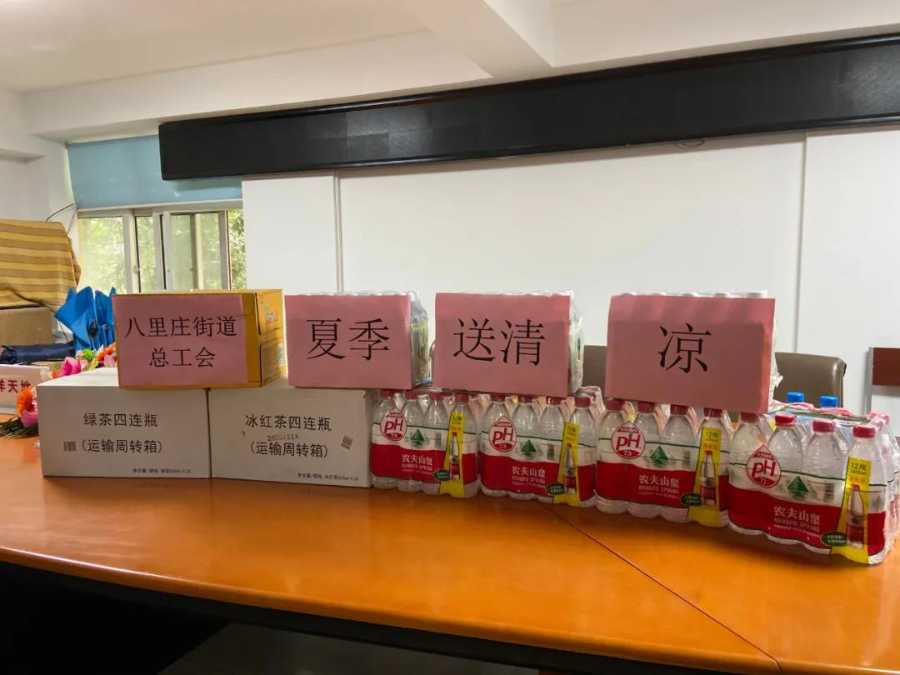 其中,八里庄街道总工会把服务和保障职工健康纳入工会工作的重要日程,走访慰问辖区16个社区,把工会组织的关爱送到社区工作者中去。平房地区总工会将3500份清凉组合套装送到职工手中,让酷暑中的职工感受到工会组织的关心和关怀。奥运村街道总工会开展慰问社会化防控一线志愿者活动,为在一线奋斗的志愿者们送去了解暑的饮料。