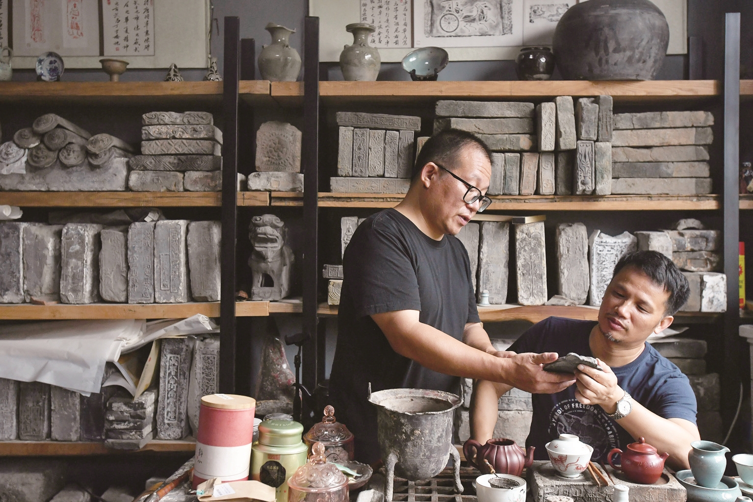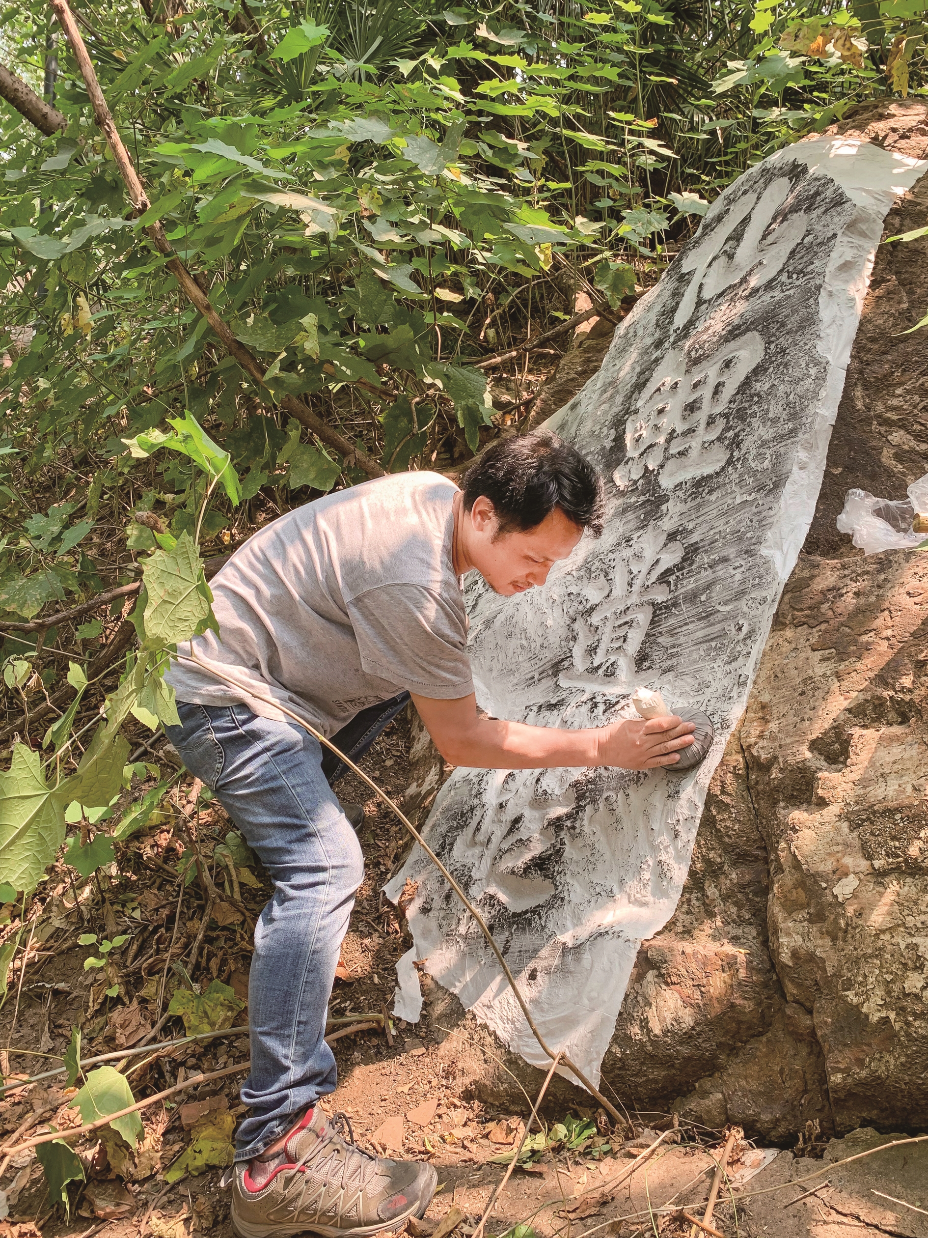 凭借高超的拓印技艺,近年来黄鹤楼、木兰山、龟山等地,都特邀张亮参与各类碑石砖刻文物的修缮保护工作,他自己也通过公益活动,分享武汉老砖故事,传授拓印技艺。在日益繁华的大都市里,张亮正在用一方小小的砖头,敲开一扇了解武汉千年历史的大门。
