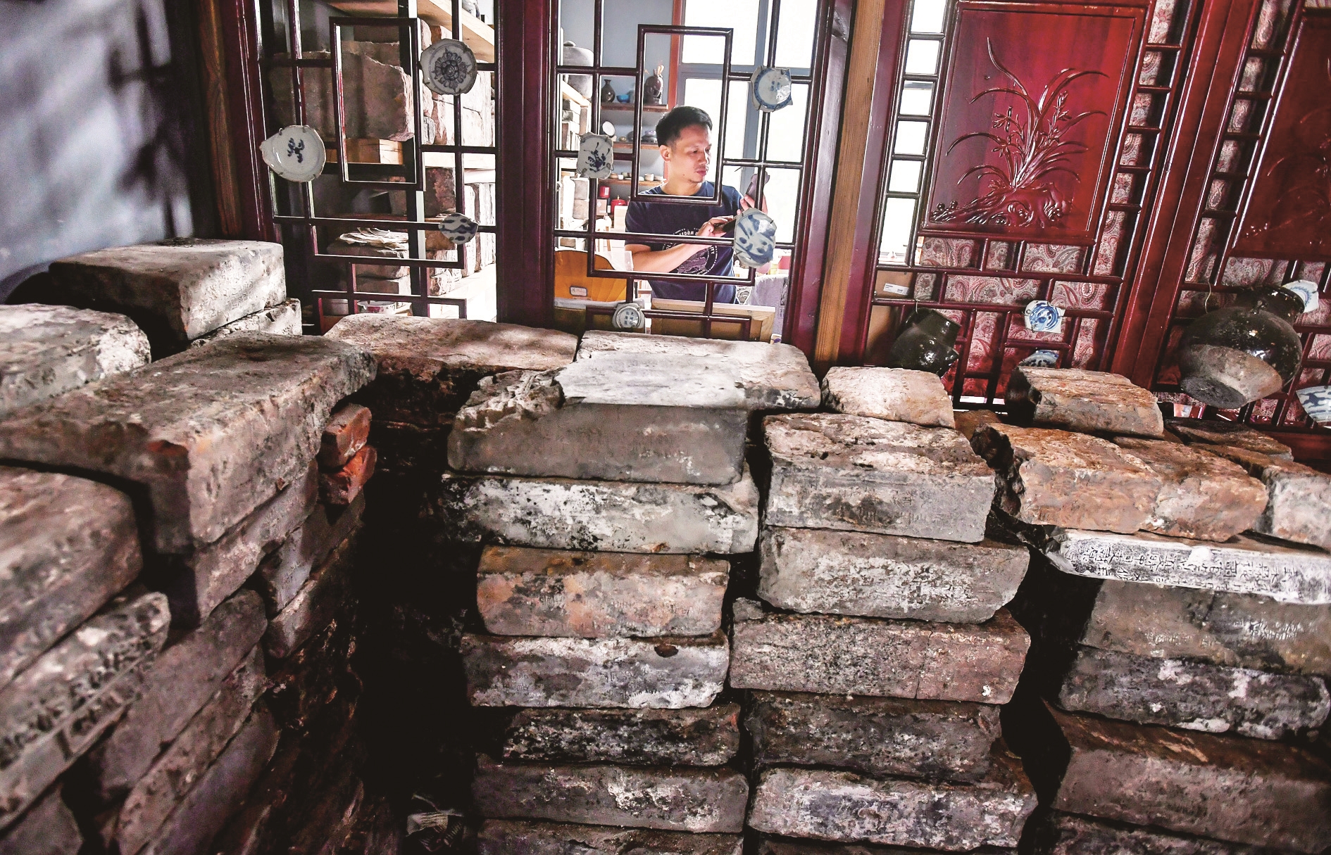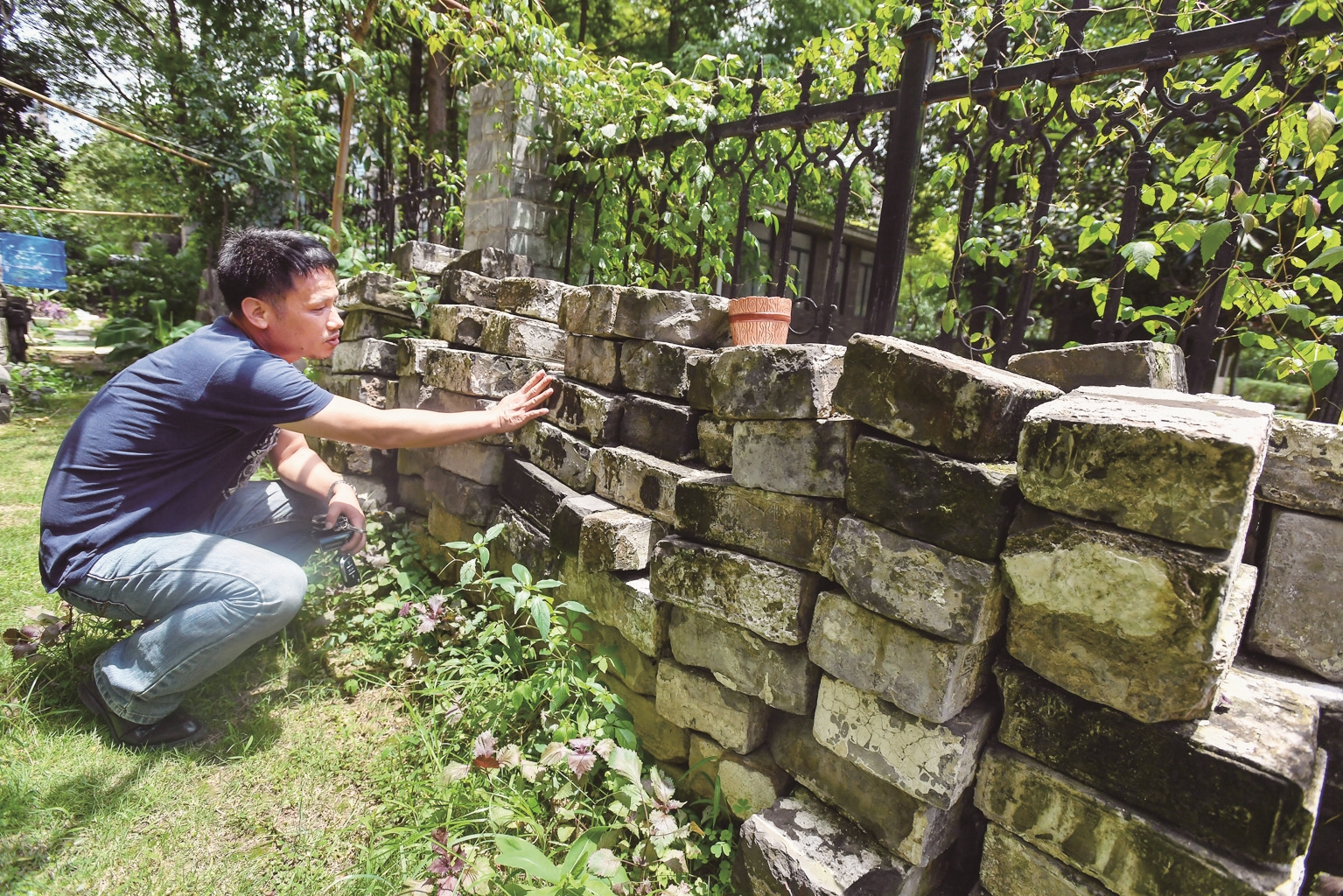 在武汉收藏圈,46岁的张亮是名副其实的“砖家”。十多年的时间,张亮收集了5000多块武汉老砖,有的摆在家里的书房,有的码在自己的工作室,还有的寄存在朋友的院子里。每一块老砖都来之不易。