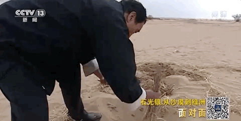 1988年春天,学习回来的石光银带领队伍,第三次征战狼窝沙。他们在迎风坡画格子,用沙障挡住荒沙,在沙障间撒沙蒿,栽柳树,固住流沙,在丘间地栽种杨树、柳树。这一次,种下的树苗成活率达到了90%。