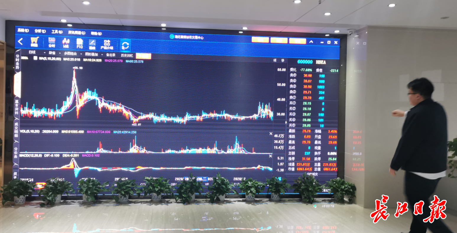 湖北碳排放权交易中心大厅碳交易K线图。长江日报记者陈永权 摄