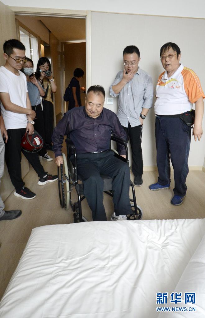 7月15日,无障碍专家在北京延庆赛区冬奥村检查和体验室内无障碍设施。