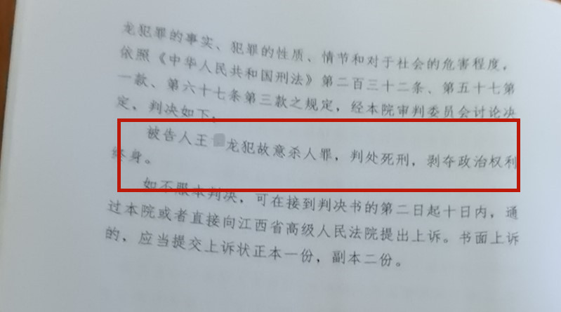 7月16日上午11时许,“南昌杀妻抛尸”案一审在南昌市中级人民法院宣判。下午1时许,极目新闻记者从受害人母亲张女士处获悉,被告人王某龙被判处死刑,剥夺政治权利终身。