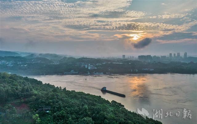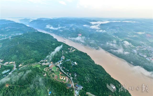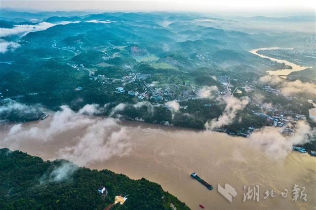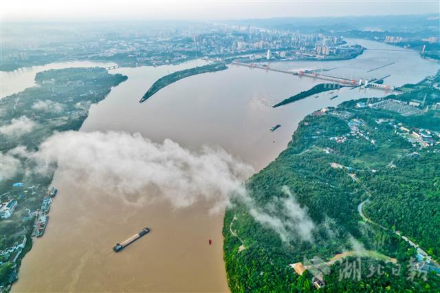 7月16日,结束了一场暴雨后,宜昌天空开始放晴,清晨,朵朵白云在城市与乡村上空飘动,植被良好的长江两岸山体处处皆景,据了解,随着近年长江大保护战略的落实与实施,宜昌生态环境质量进一步向好,今年上半年,宜昌优良天数比例为80.7%,PM2.5累计平均浓度为45微克/立方米,实现改善空气质量阶段性目标。(湖北日报全媒记者 刘曙松 摄)