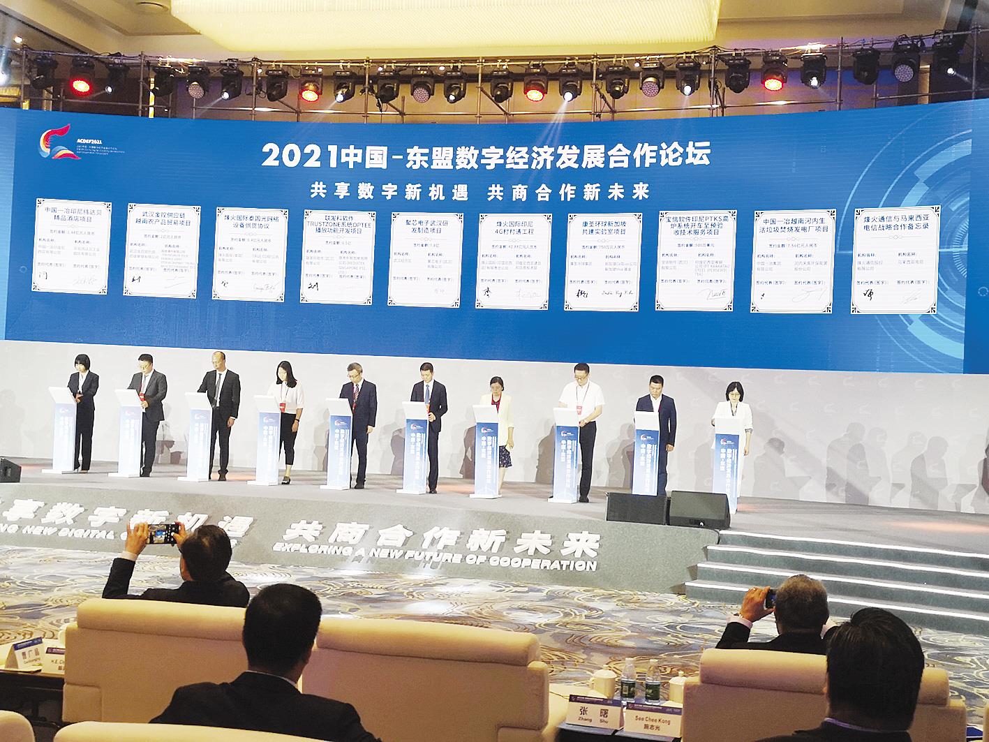 出席2021中国—东盟数字经济发展合作论坛的嘉宾,围绕打造中国—东盟数字经济国际合作新平台,共建“数字丝绸之路”展开深入交流,推动合作走深走实。