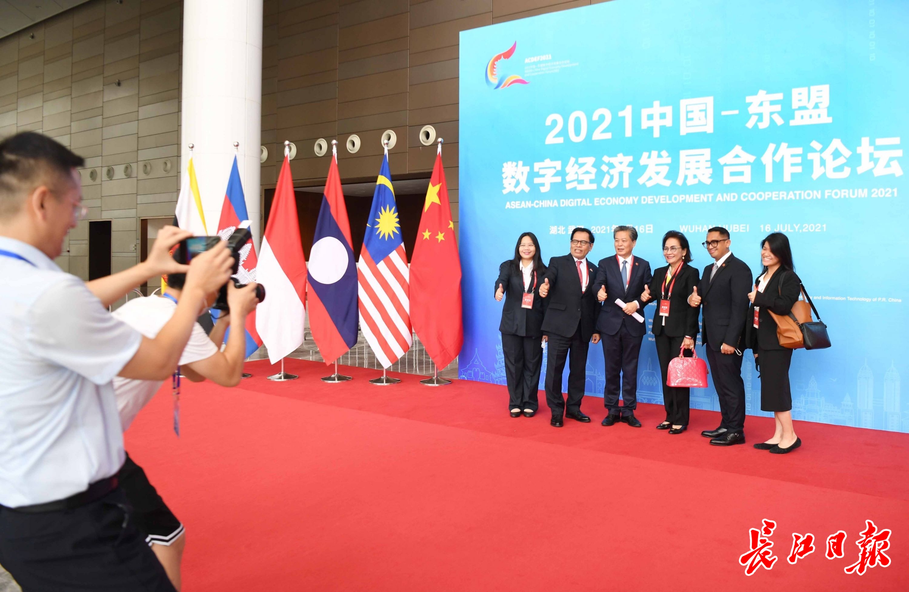 中国—东盟数字经济发展合作论坛开幕式在汉举行,嘉宾在会场合影纪念。长江日报记者高勇 摄