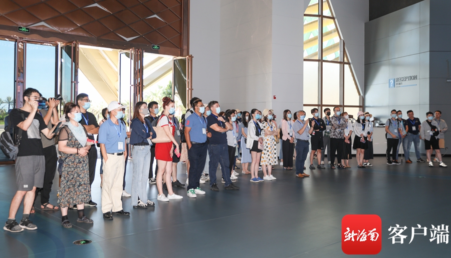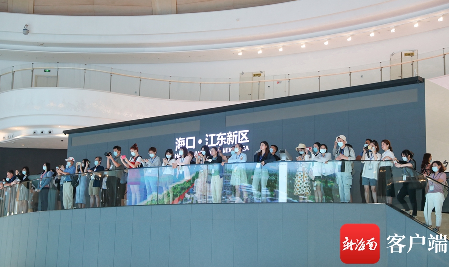 7月17日,全媒体采访团的编辑记者们走进海口江东新区参观采访。记者 李昊 摄