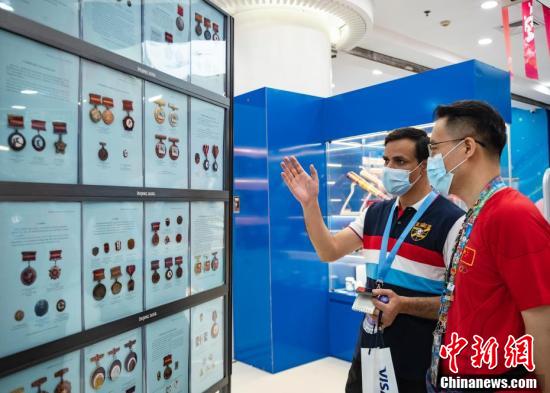 7月17日上午,“冰与火的澎湃·奥林匹克徽章展”在北京王府井工美大厦拉开帷幕,来自全国12个省市的60位奥林匹克徽章收藏家制作了936个标准展盒,展出徽章9000余枚。该展览也是当天启动的“北京2022奥林匹克徽章文化周”活动的环节之一。图为中外奥运徽章同好参观展览。 中新社记者 侯宇 摄