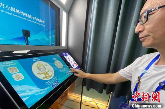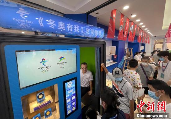 7月17日上午,奥林匹克历史上第一台个性化徽章制作机亮相北京王府井工美大厦,使用者经过简单操作即可将个人形象镭射到北京2022冬奥会主题的徽章上。当天,“北京2022奥林匹克徽章文化周”的活动环节之一的“北京2022徽章交换中心”在此启用,“冰与火的澎湃·奥林匹克徽章展”也同期开幕。 中新社记者 侯宇 摄