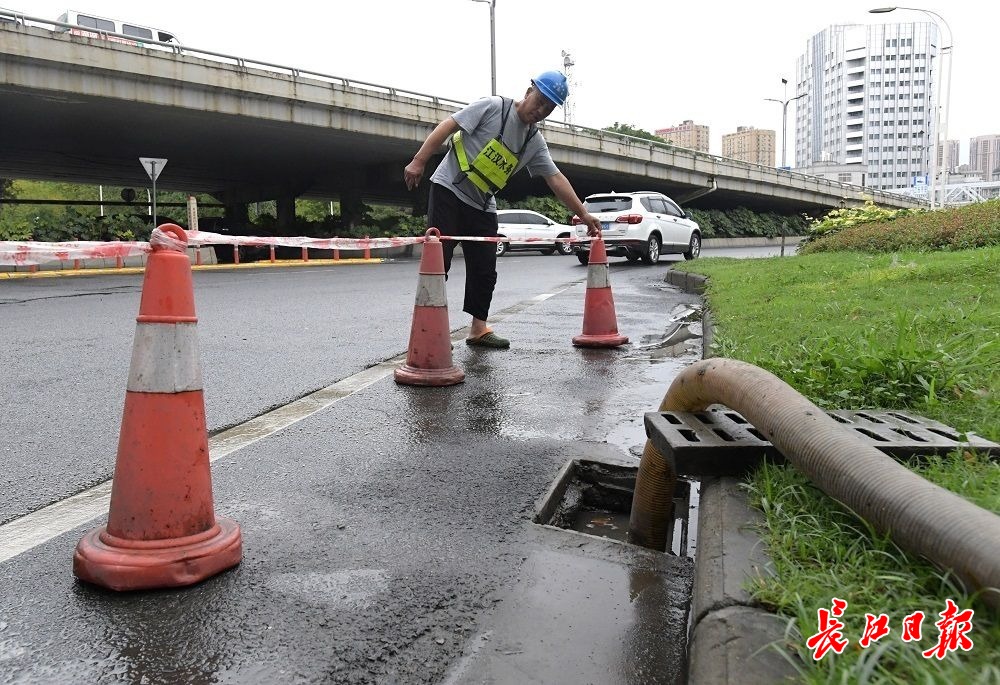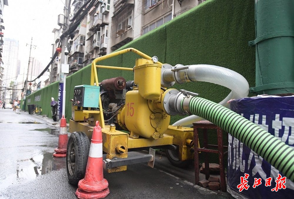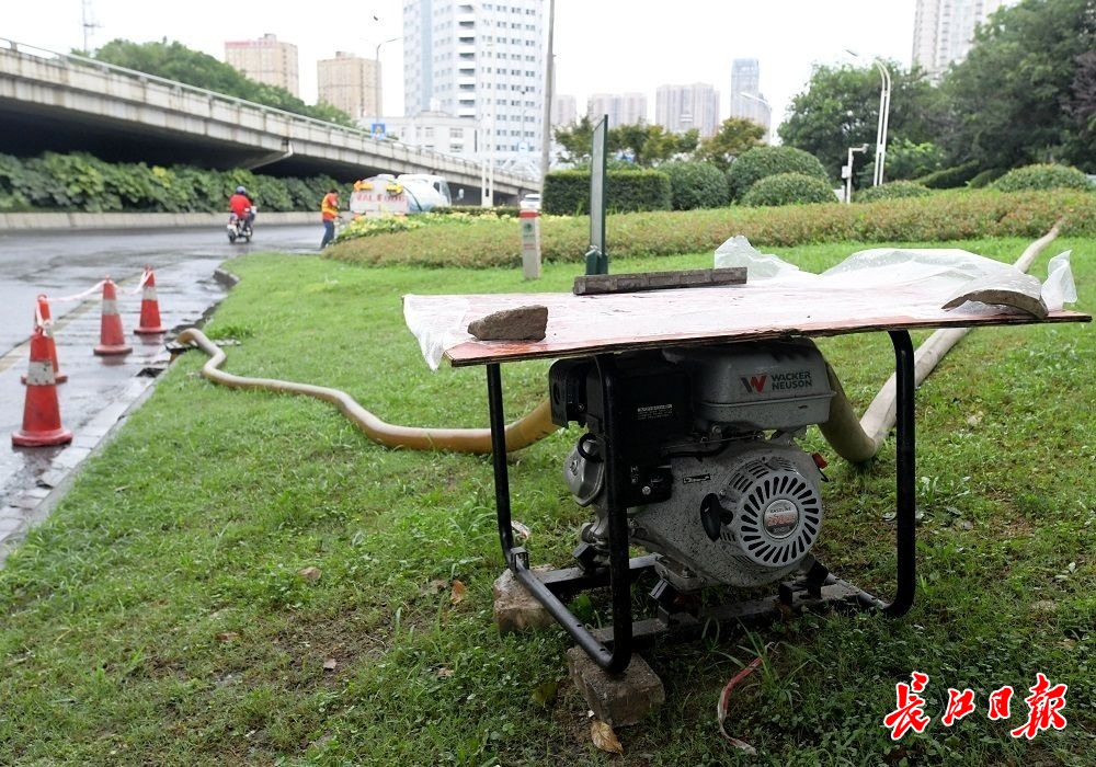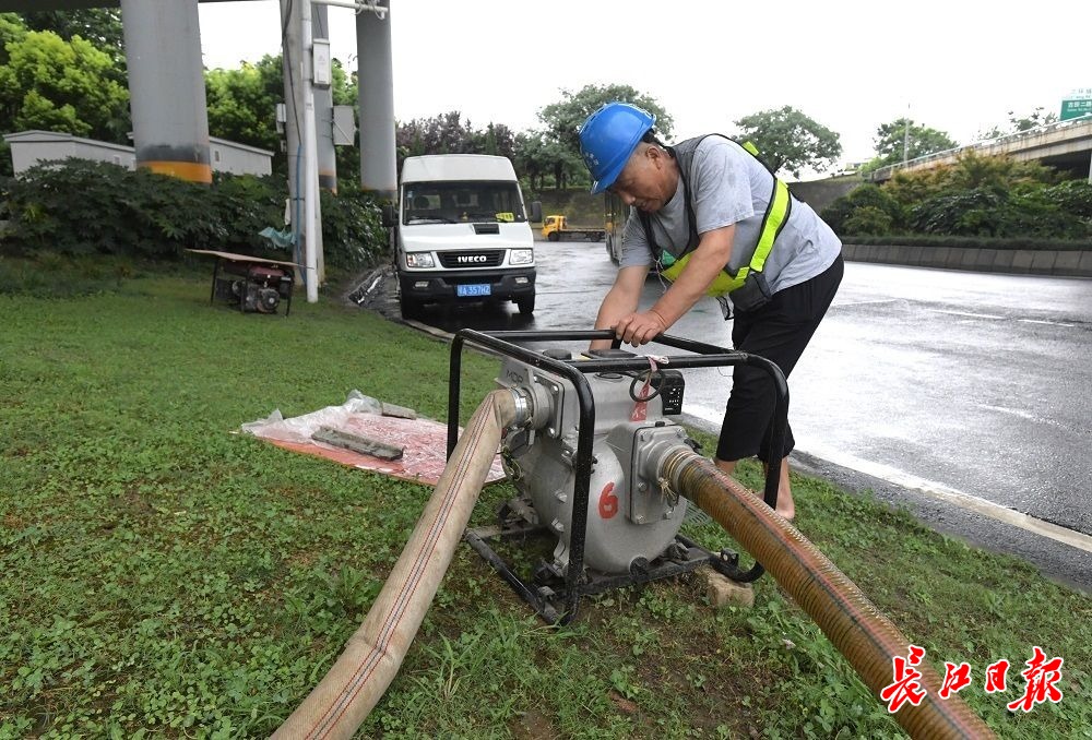 长江日报7月17日讯 7月17日,收到暴雨预警,江汉区水务局排水队工作人员未雨绸缪,在常青路、华安里社区铁路涵洞等易涝点,提前布置排水设备,疏通清理下水管道排水口,应对即将来临的暴雨,严阵以待保障道路畅通。(长江日报记者刘斌 摄影报道)