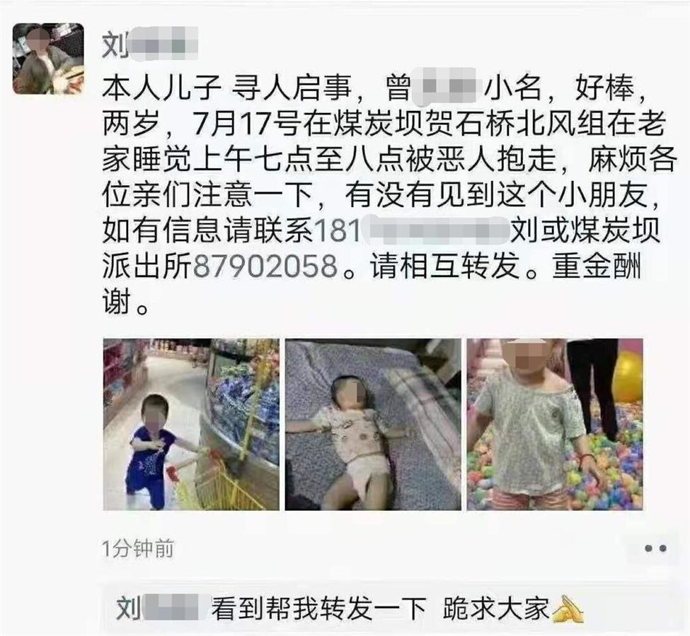 事发宁乡市煤炭坝镇贺石桥村。极目新闻记者看到,文文失踪后,家长曾在微信朋友圈发布寻人启事称,孩子早上7点到8时在老家睡觉时被恶人抱走,跪求转发寻找。