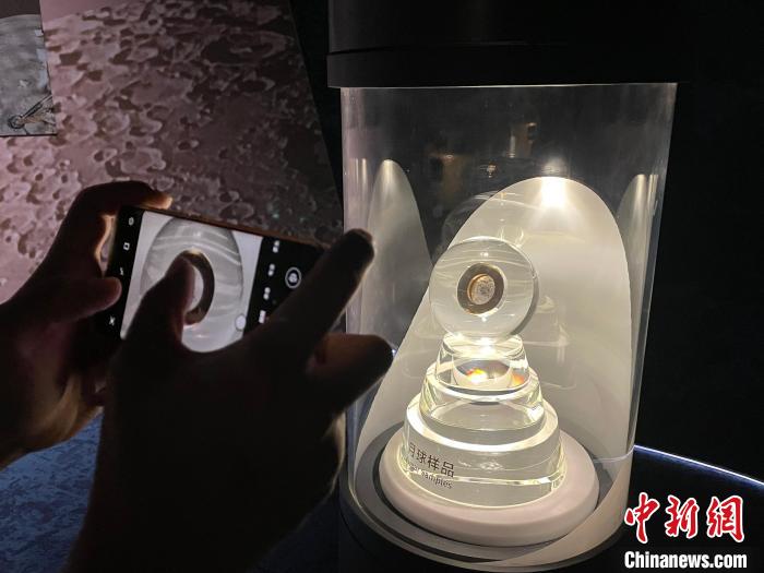 观众可以在展区近距离观看嫦娥五号带回的部分月壤样品 郑莹莹 摄
