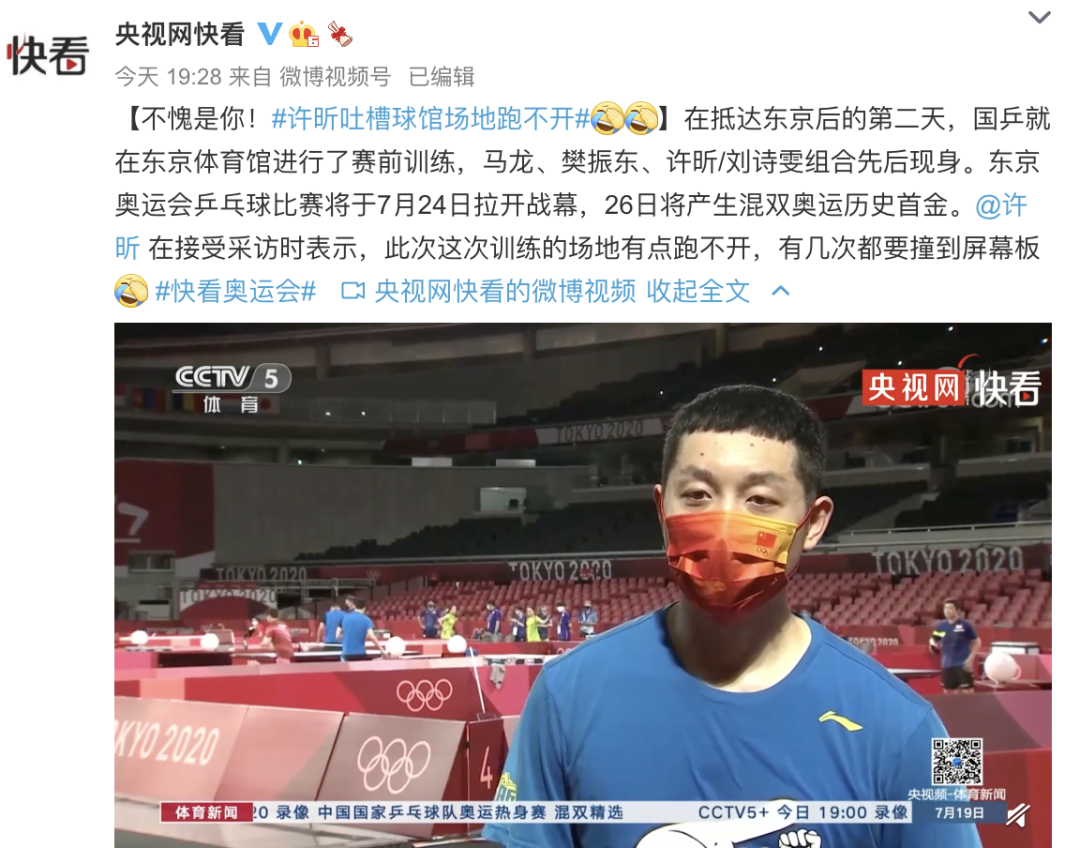 而许昕接受采访时也认为场地有些小,“打比赛打到大赛关键分,直板的优势还是跑动,我们一直在看场地的大小,有几个侧身球都撞到屏幕板上了,稍微受一些影响。”
