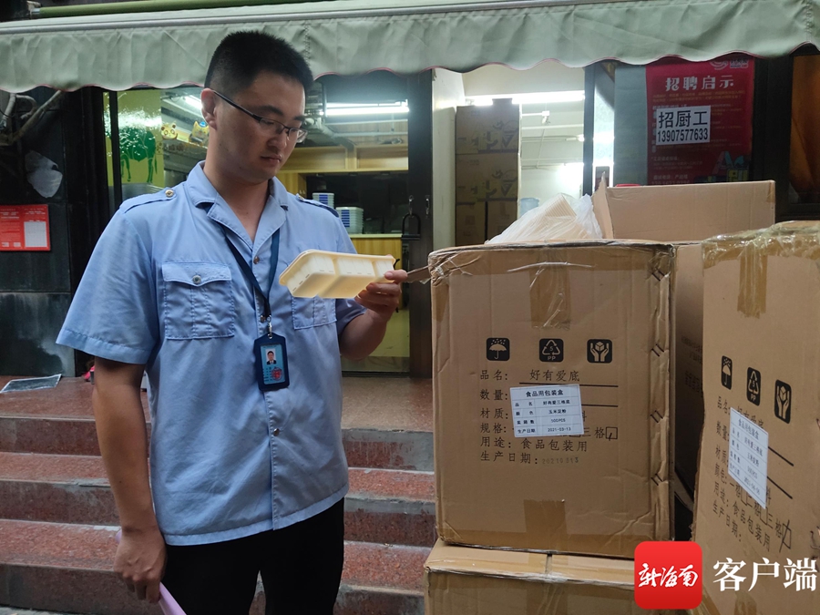 7月20日,记者从海口市市场监督管理局龙华分局金贸监管所了解到,目前“好有爱”外卖餐饮店相关负责人已到该监管所接受处理,其承认从东莞购进该批一次性不可降解塑料制品,供店内打包自行使用。
