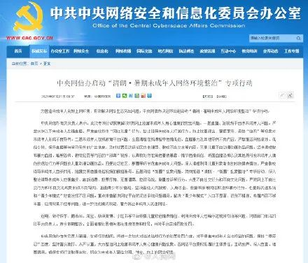为营造未成年人良好上网环境,有效解决网络生态突出问题,中央网信办决定即日起启动“清朗·暑期未成年人网络环境整治”专项行动。