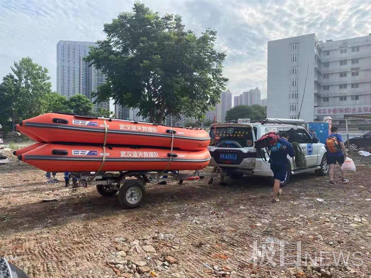 21日上午8时,武汉蓝天救援队10名队员携带2艘冲锋舟以及激流救援马甲、绳索等装备,从武汉训练基地出发驰援河南。21日下午4时许,极目新闻记者联系上带队队长张泉,他们已抵达郑州市中原区永庆陆。