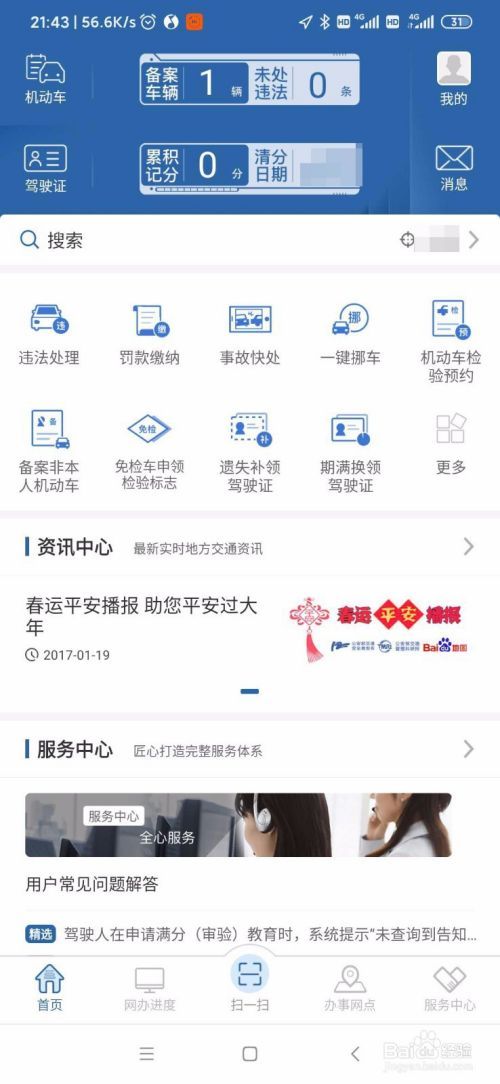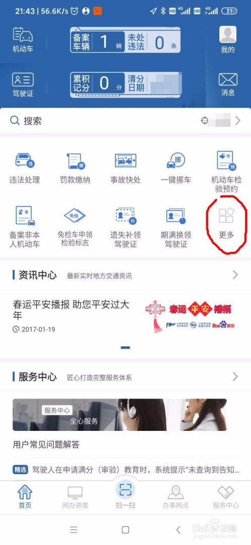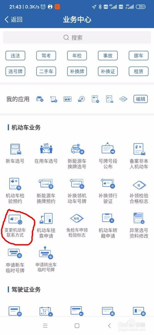 2、点击首页的“更多”进入业务中心,找到“变更机动车联系方式”选项