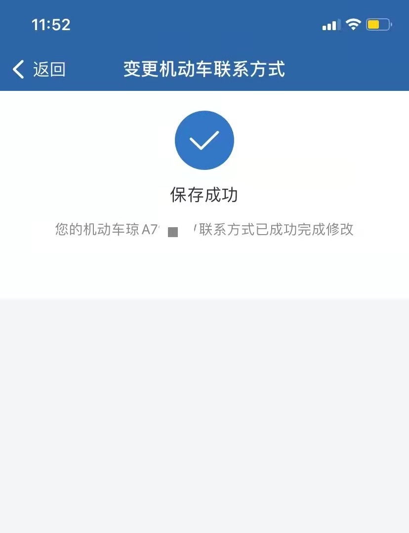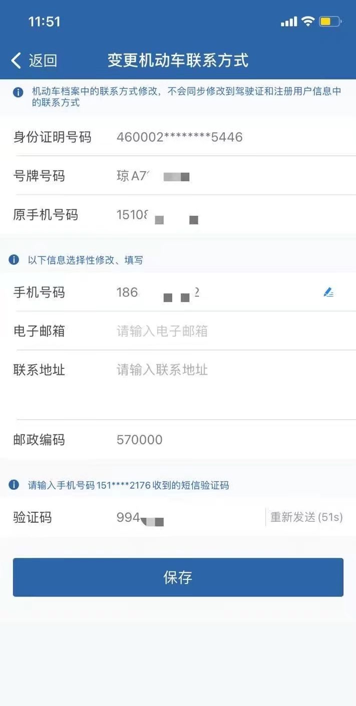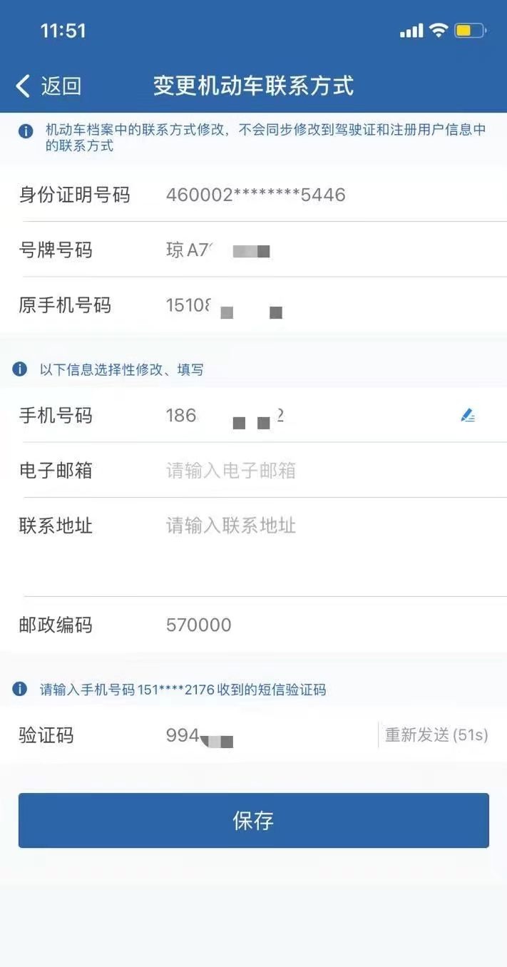 6、验证通过后,点击“保存”选项,完成车辆登记信息修改。