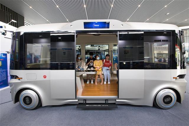 现场工作人员介绍,通过车内座椅和功能配置的调整,SV-BUS能设计成无人移动吧、VIP多功能商务车、无人微公交、无人观光车等多种用途的车型,整车载客12至17人,能够在大型公园、生态长廊、工业园、校园、固定线路的郊区等场景实现无人接驳服务。