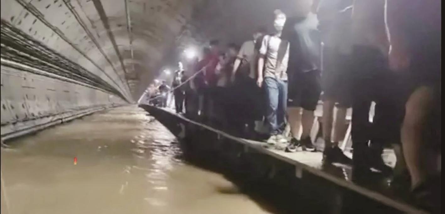 地铁停运五六分钟后,人群还只是窃窃私语。突然有人喊了一声:水淹上来了。随后,有乘客开始扒门,试图破门而出。当时,乘客中有一位男士出示了自己的警官证,制止了扒门乘客。不久后,乘客们开始下车在隧道步行。