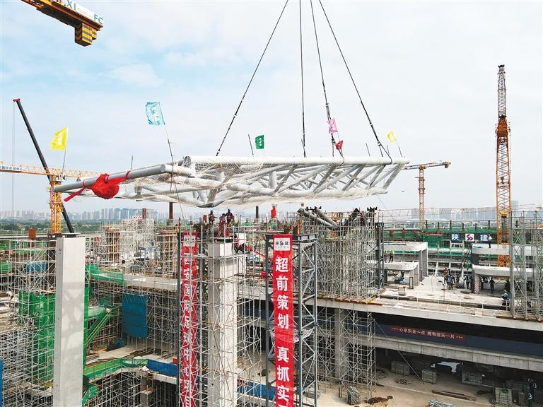 西安国际足球中心屋盖安装精度要求高、难度大,预计整个钢结构罩棚要在今年10月31日前完工。