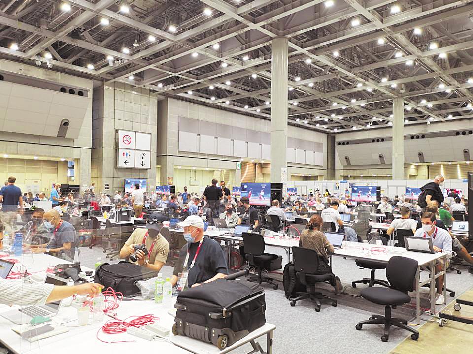 相较东京较为冷清的街头,MPC里的奥运氛围相当浓厚,媒体工作区域设备齐全,来自各个国家的媒体记者已经进入战时状态,大赛一触即发。