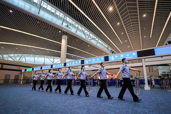 青岛胶东国际机场8月12日转场启用在即,近日,山东边检总站青岛机场边检站加强通关查验设施调试维护,组织多轮次、全流程的边检通关模拟演练,冲刺做好转场运行准备。