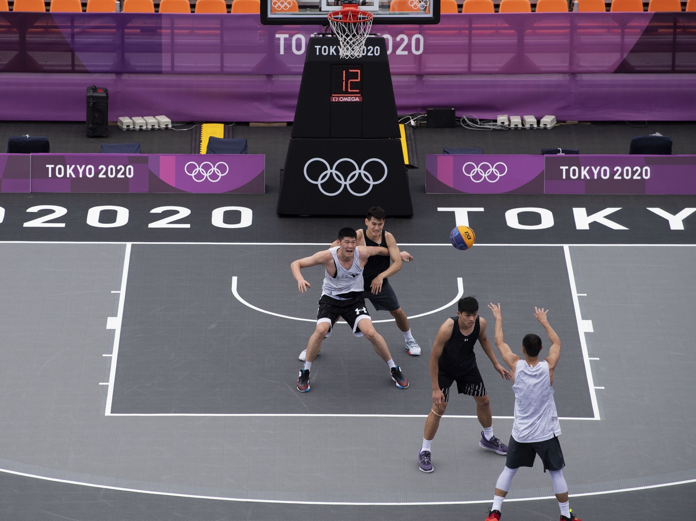 7月21日,中国三人篮球男队队员在训练中。新华社提供