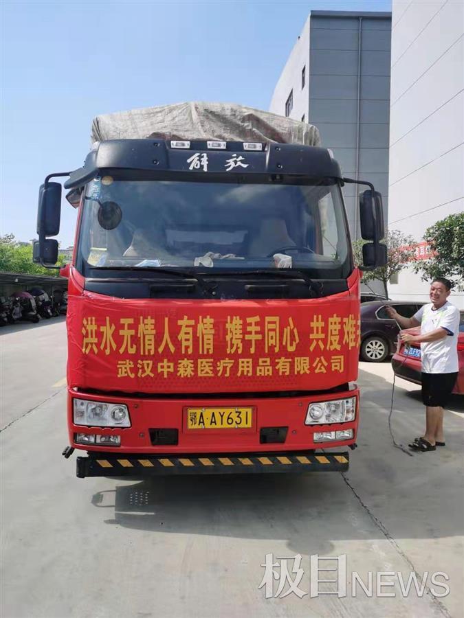 7月22日上午,位于邾城街城北工业园的武汉中森医疗用品有限公司,在公司副总经理曾庆长亲自带领下,两辆满载着价值14余万元爱心物资(湿巾和灭菌口罩)的大车紧急驰援河南灾区。