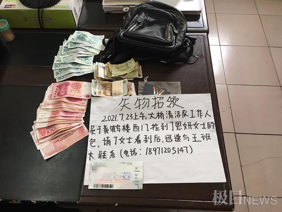 7月23日,武汉市武昌区一名环卫工捡到装有4000多元现金的钱包后,在原地手写“失物招领”,最终将钱包归还给了一位外地来汉的游客。