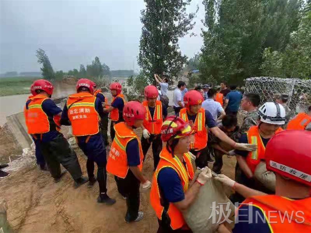 7月23日,河南省许昌市长葛市南席镇马武村附近双洎河河堤发生溃堤,溃堤长度达50米左右。接到增援指令后,援豫的襄阳市消防救援支队50人11车2舟4艇迅速赶赴现场,对溃堤决口进行封堵作业。截至当日下午5时,装填封堵沙石物料共160余方。