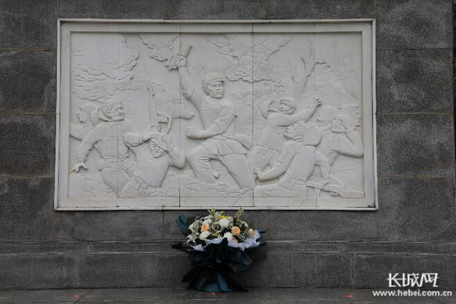 沙河市烈士陵园纪念碑上的浮雕,艺术再现了杨春增壮烈牺牲的场景。记者 王璇 摄