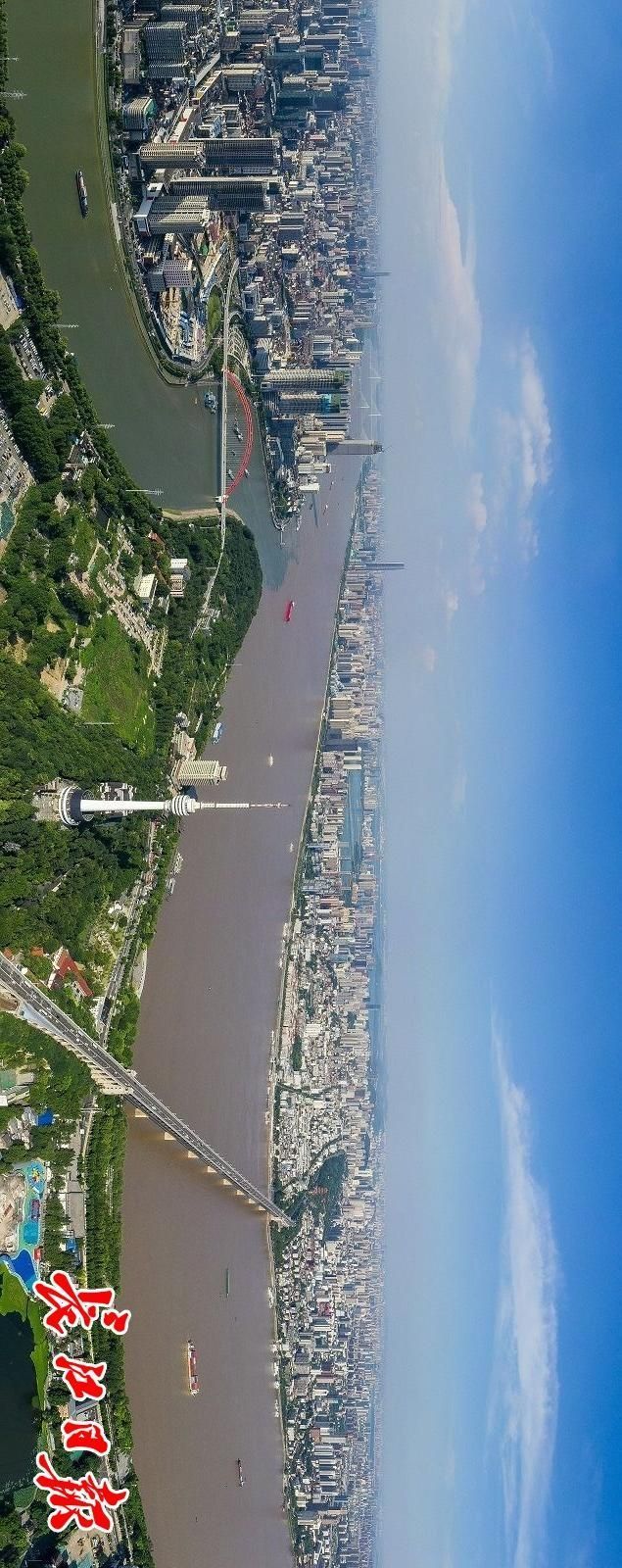 从汉阳上空俯瞰两江四岸,天空湛蓝白云飘。长江日报记者胡冬冬 摄