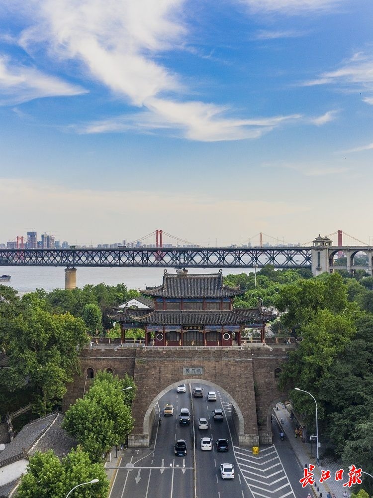 长江大桥上空,白云飘飘。长江日报记者胡冬冬 摄
