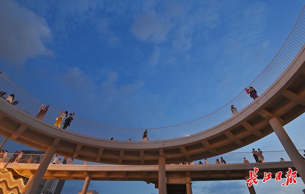 市民漫步“屋顶步道”,享受夏夜晚风。 长江日报记者郭良朔 摄