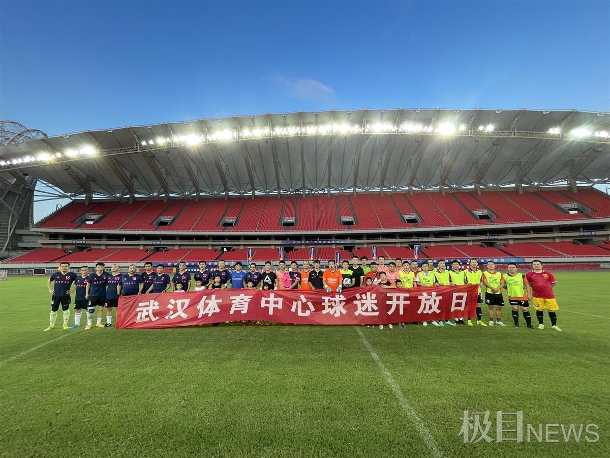 7月24日,在武汉体育中心体育场举办了盛大的球迷开放日盛典,从即日起,武汉体育中心体育场、1号场、2号场地将正式向公众开放。开放日首日即有2021武汉经开区职工足球决赛登陆体育场激战,他们中有经开区最活跃的草根球队,有来自中武汉各行各业的足球爱好者,作为体验开放日捷足先登的首场球迷,过足了职业球员瘾。在宽大明亮的更衣室换好装备,从球员通道踏进球场,宏伟的看台、真皮沙发的替补席、顶级比赛用球,空气中散发着青草与泥土混合的清香,这一刻的满满仪式感满满,让来自经开梦之队的球员小张直呼:“这完全满足了关于职业足球的幻想”。在开放日盛典上,体育中心还特意邀请了专业足球解说及网络足球红人现场评球,做足了体验感。