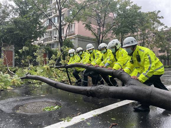 25日9时许,普陀警方接到群众报警:平利路西乡路口大树被大风刮倒,影响交通,并砸坏报警人车辆。接报后,普陀公安分局交警支队民警陈夏君迅速赶赴现场,设置警戒区域,指挥过往车辆交替单向通行,直至绿化部门清障完毕。